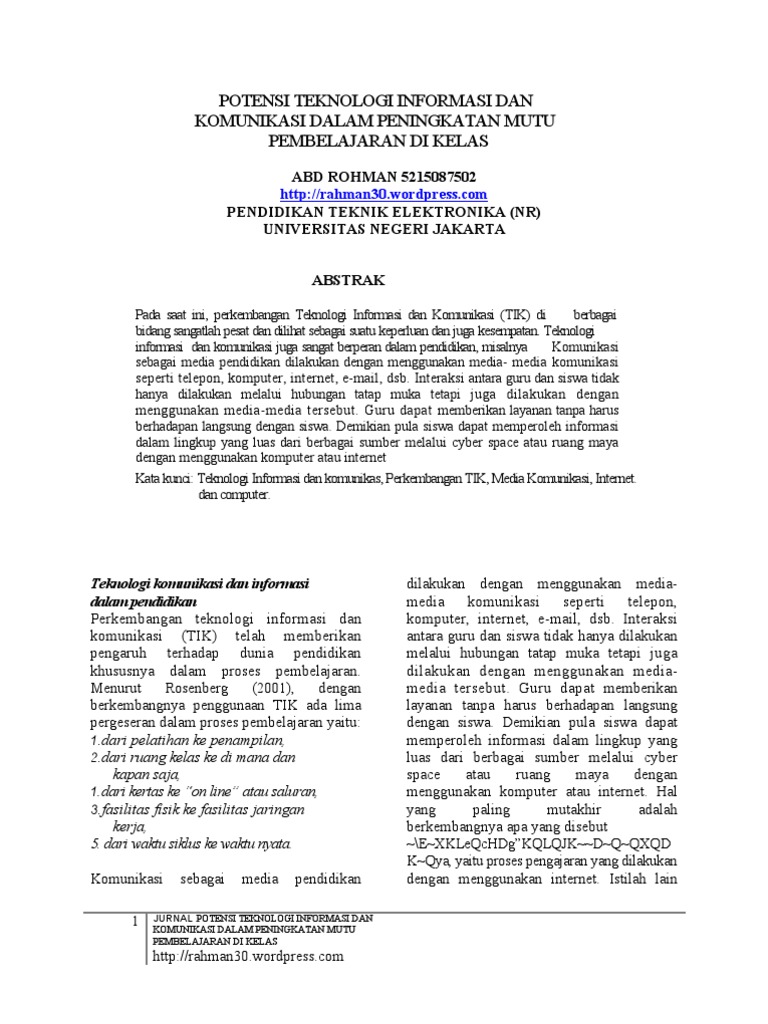 Related : Jurnal Komunikasi Dan Teknologi / Penerapan Media Pembelajaran Berbasis Teknologi Informasi Dan Komunikasi Ta Dib Jurnal Pendidikan Islam Dan Isu Isu Sosial / Computer based learning (pembelajaran berbasis komputer) 5..